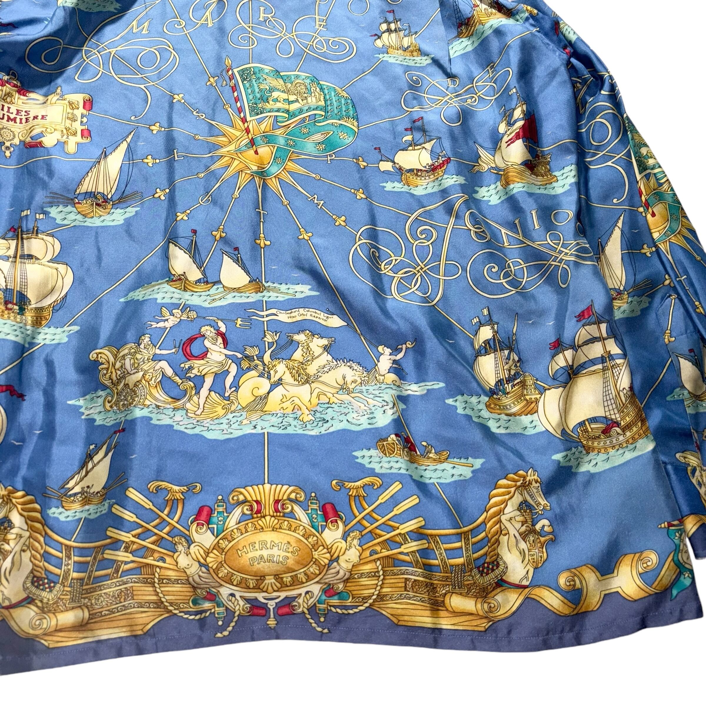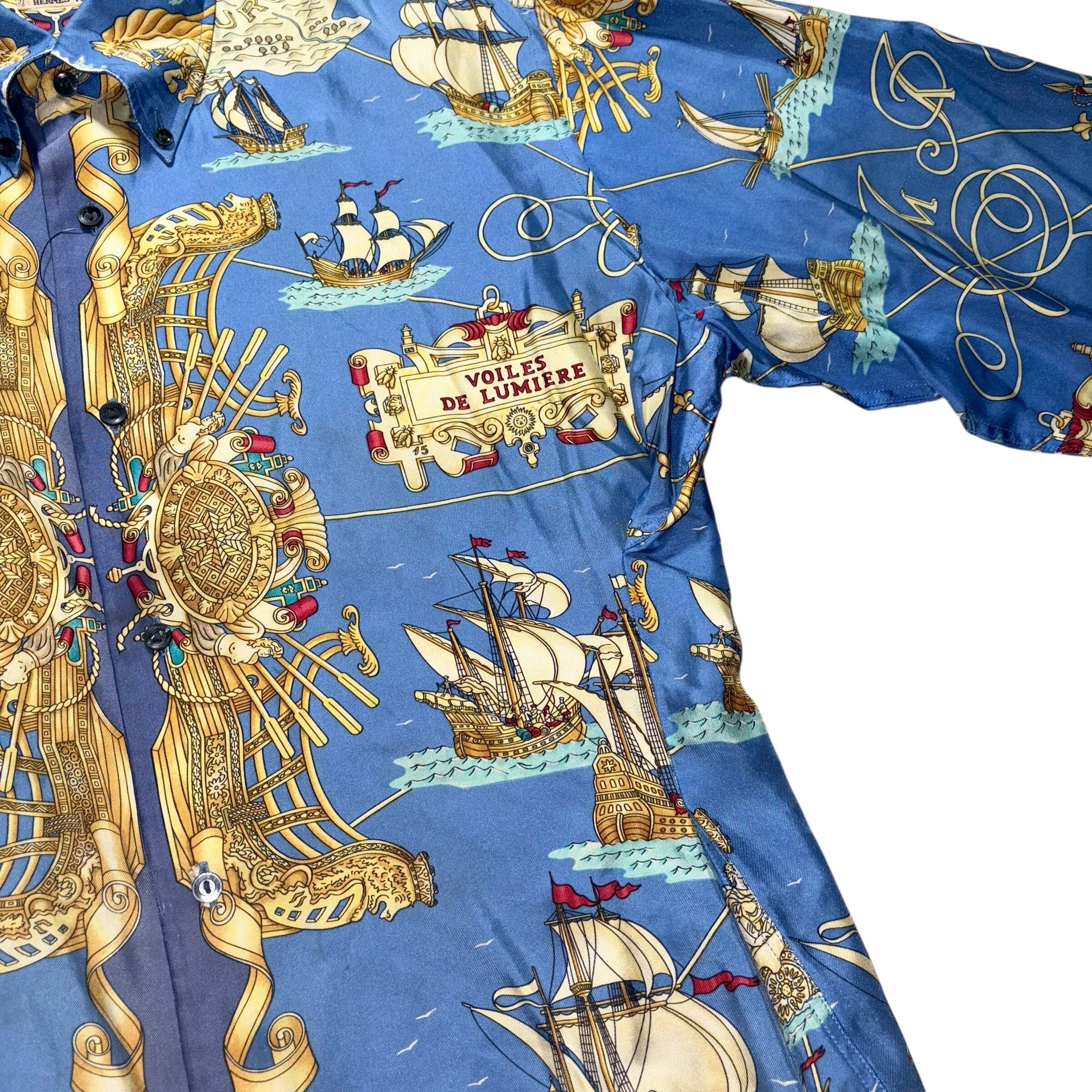 vintage HERMES scarf pattern silk shirt “VOILES DE LUMIERE”