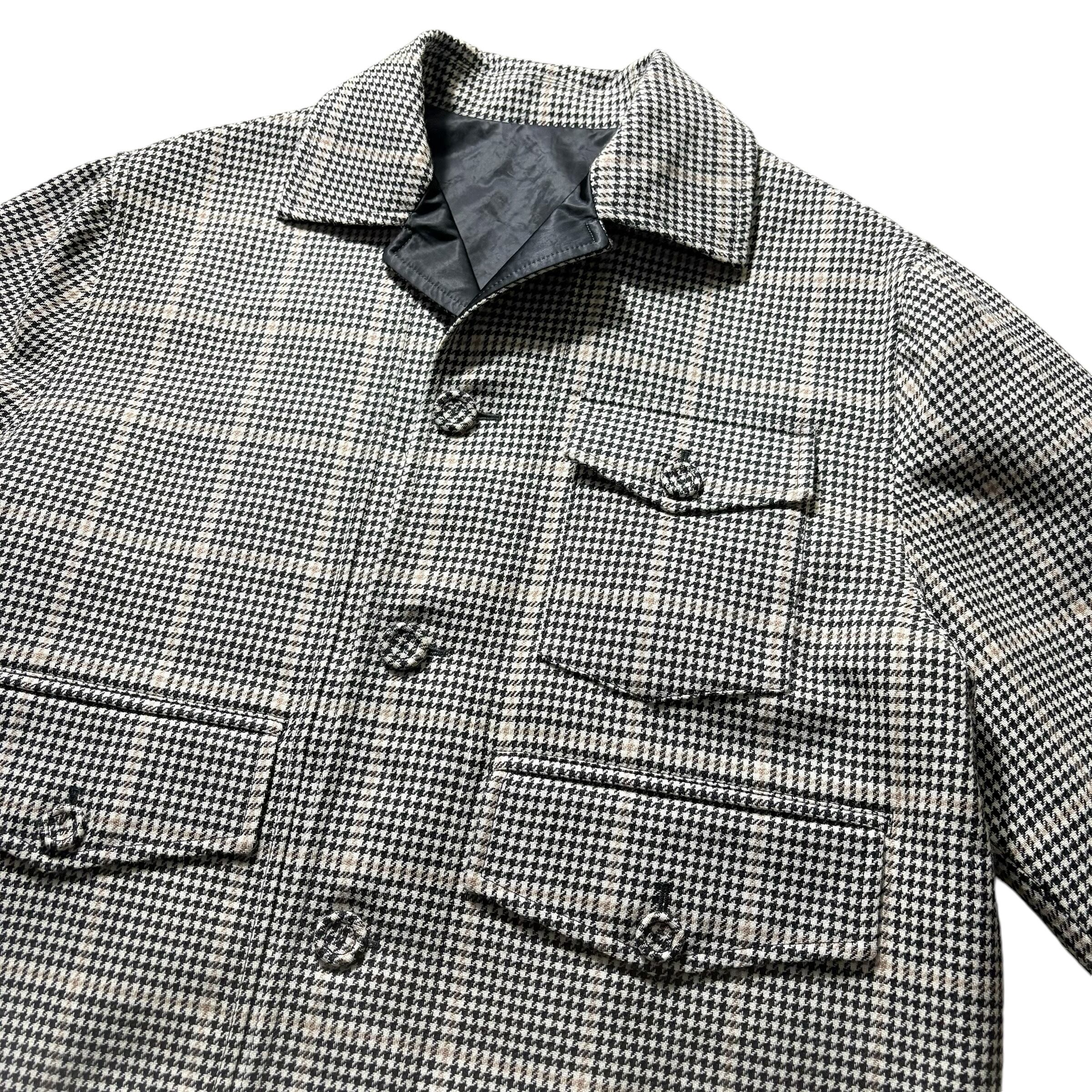 三つポケ千鳥柄ウールブルゾン。