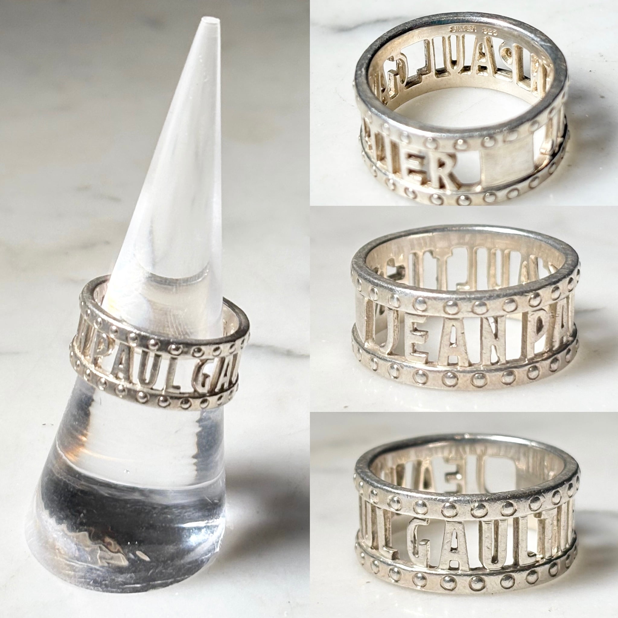 JEAN PAUL GAULTIER silver logo cut work ring