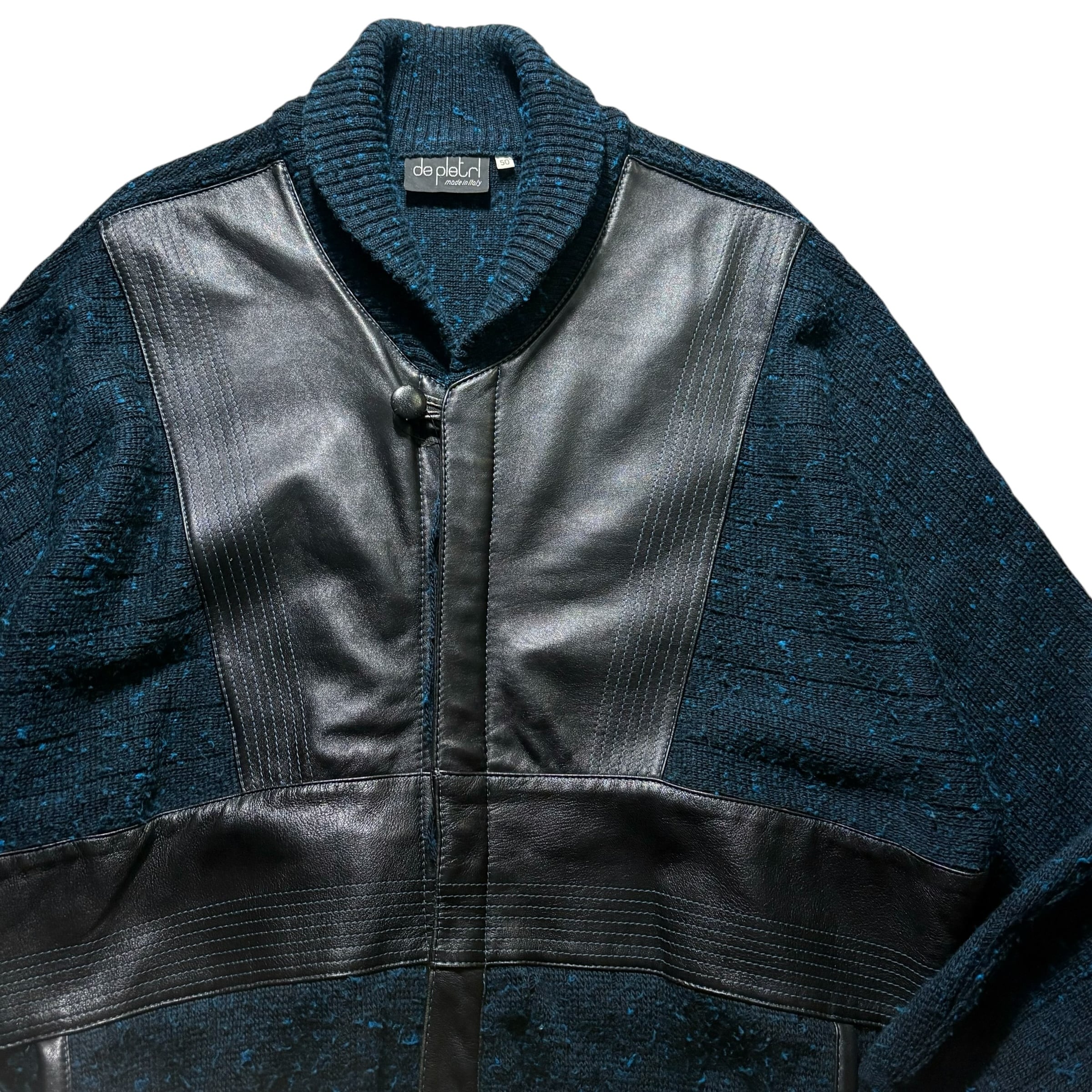 Made in Italy leather switching shawl collar knit jacket