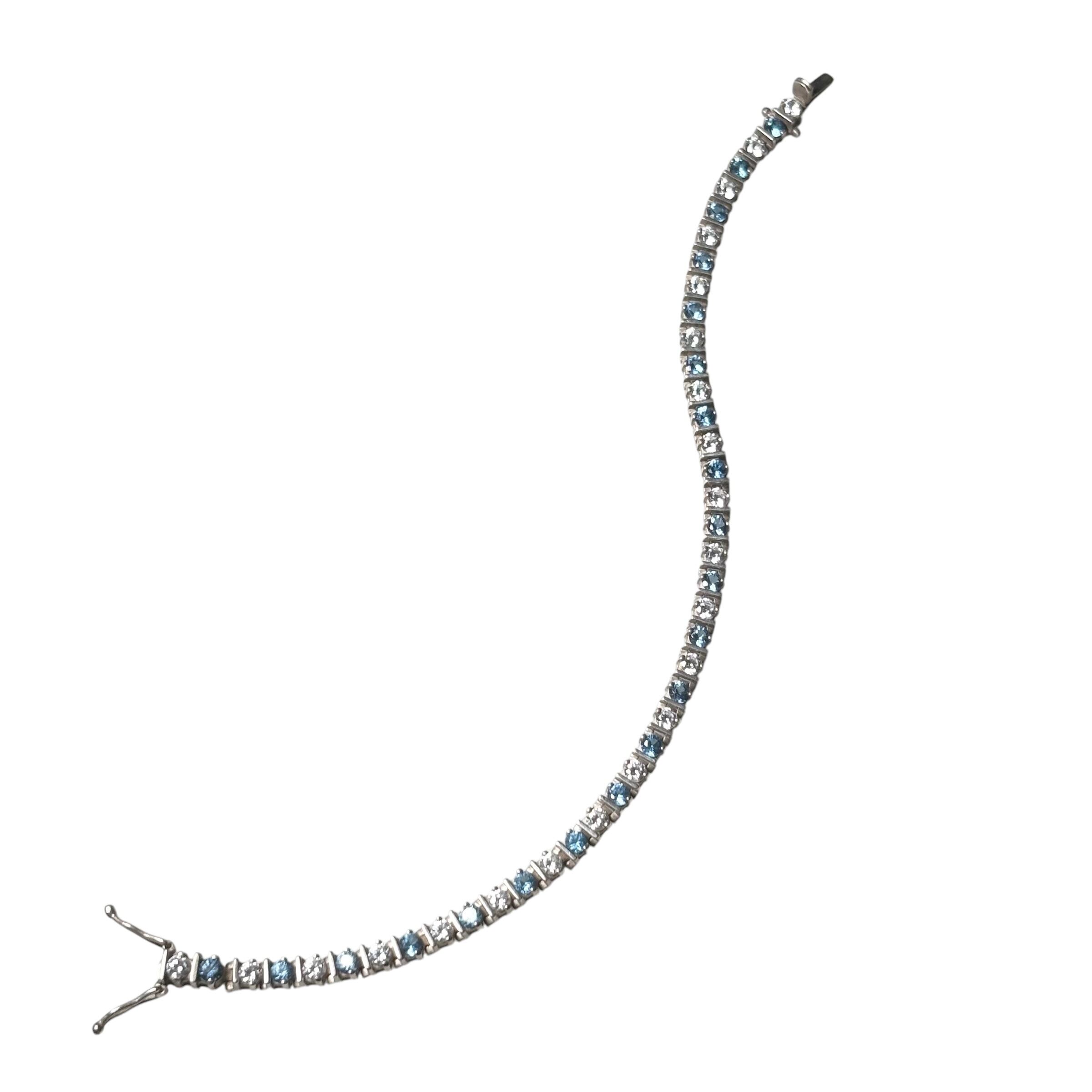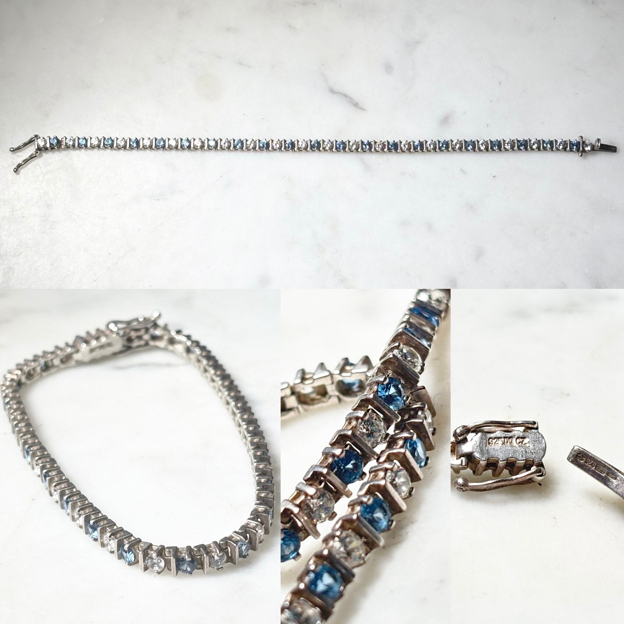 vintage silver blue & clear stone tennis bracelet