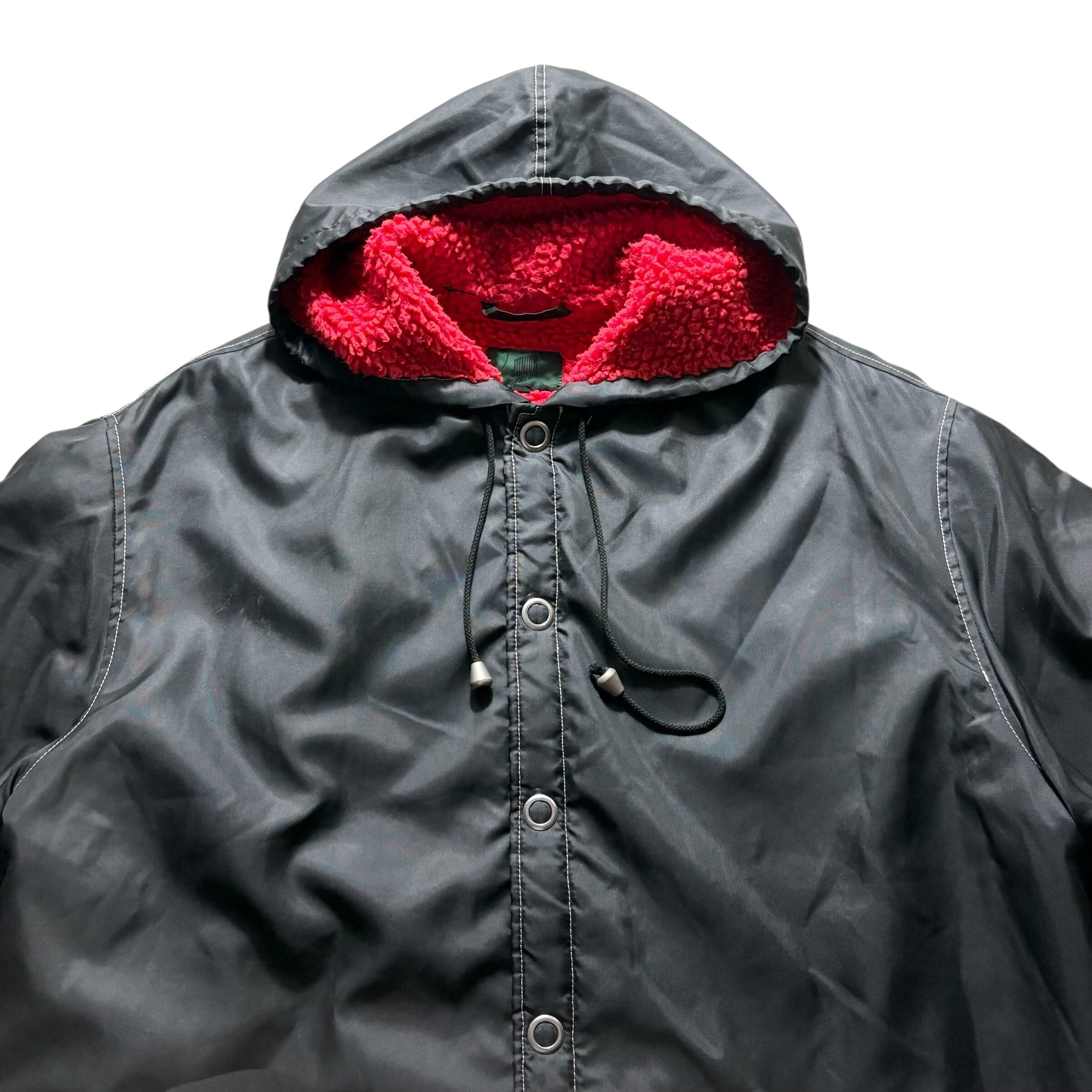 野暮ったいイメージですがバックのロゴと裏の赤パイルで一気にモードに昇華しています。