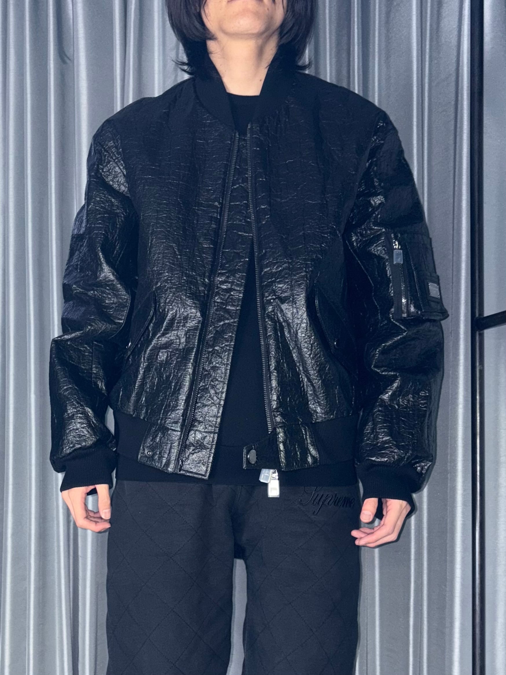 厚紙のような硬質感のテクニカルファブリックで作られたボンバージャケット。