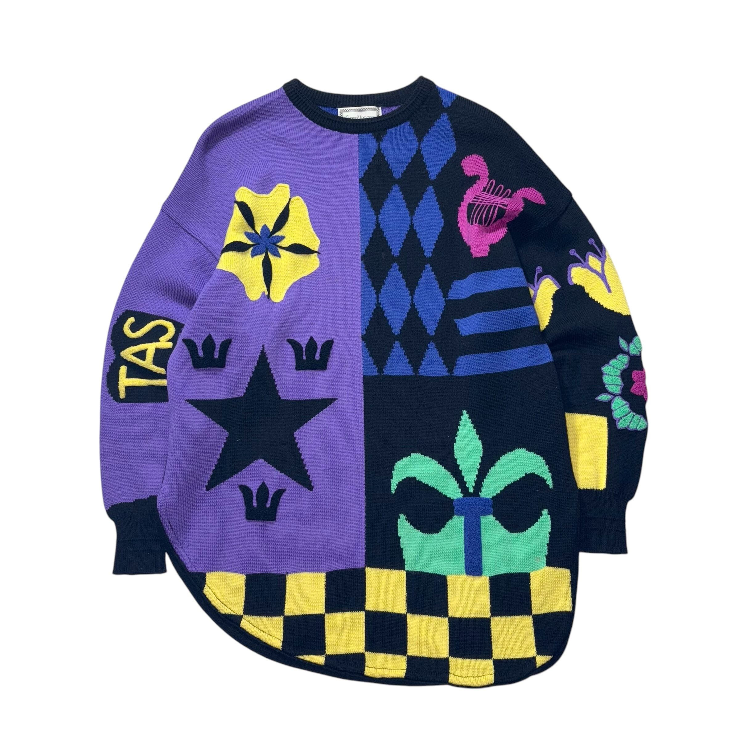 vintage GIANNI VERSACE crazy pattern wool knit sweater