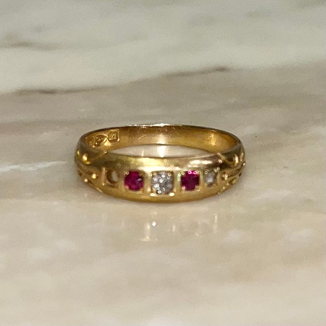 antique victorian 18ct gold ruby & diamond gypsy ring