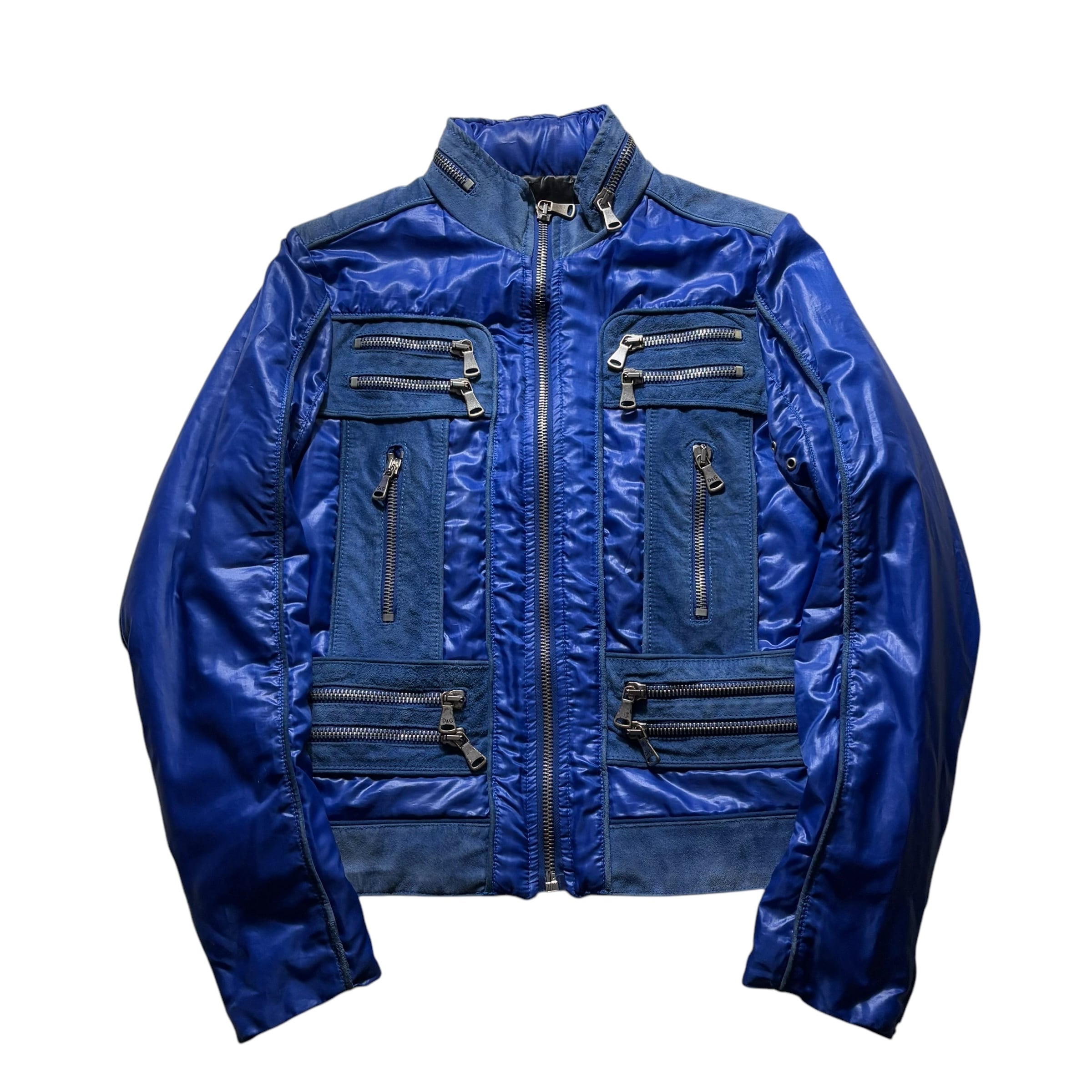 2007AW D&G blue nylon × leather multi zip utility jacket