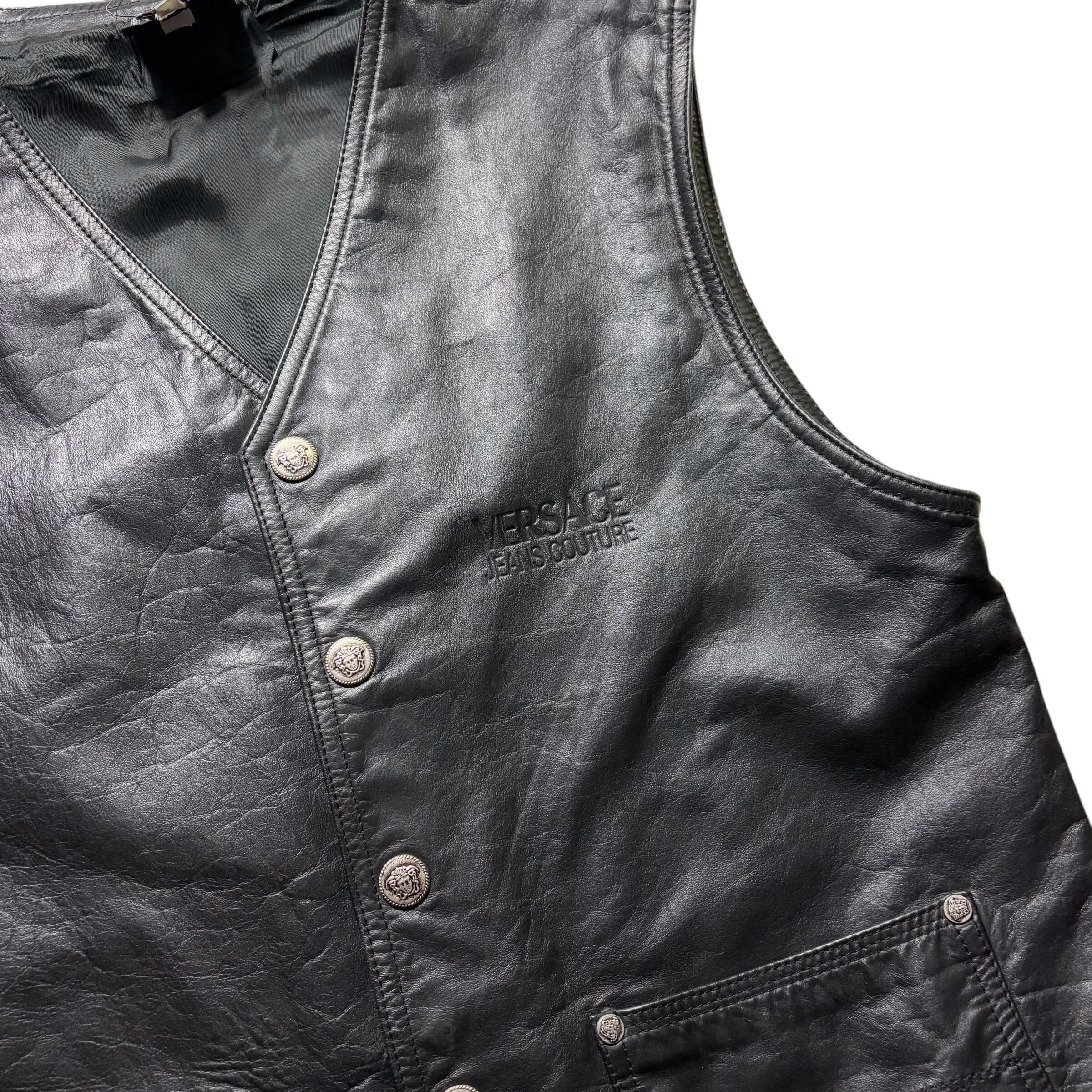 vintage VERSACE JEANS COUTURE logo embossed black leather vest