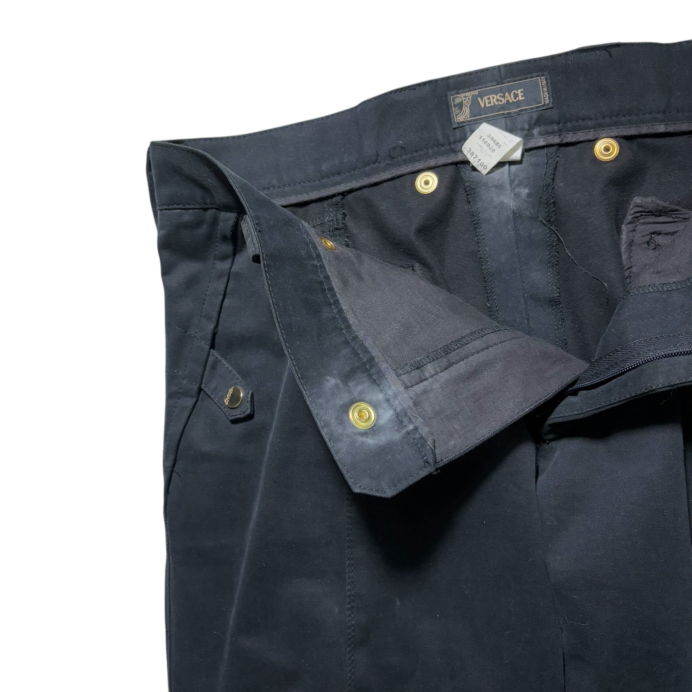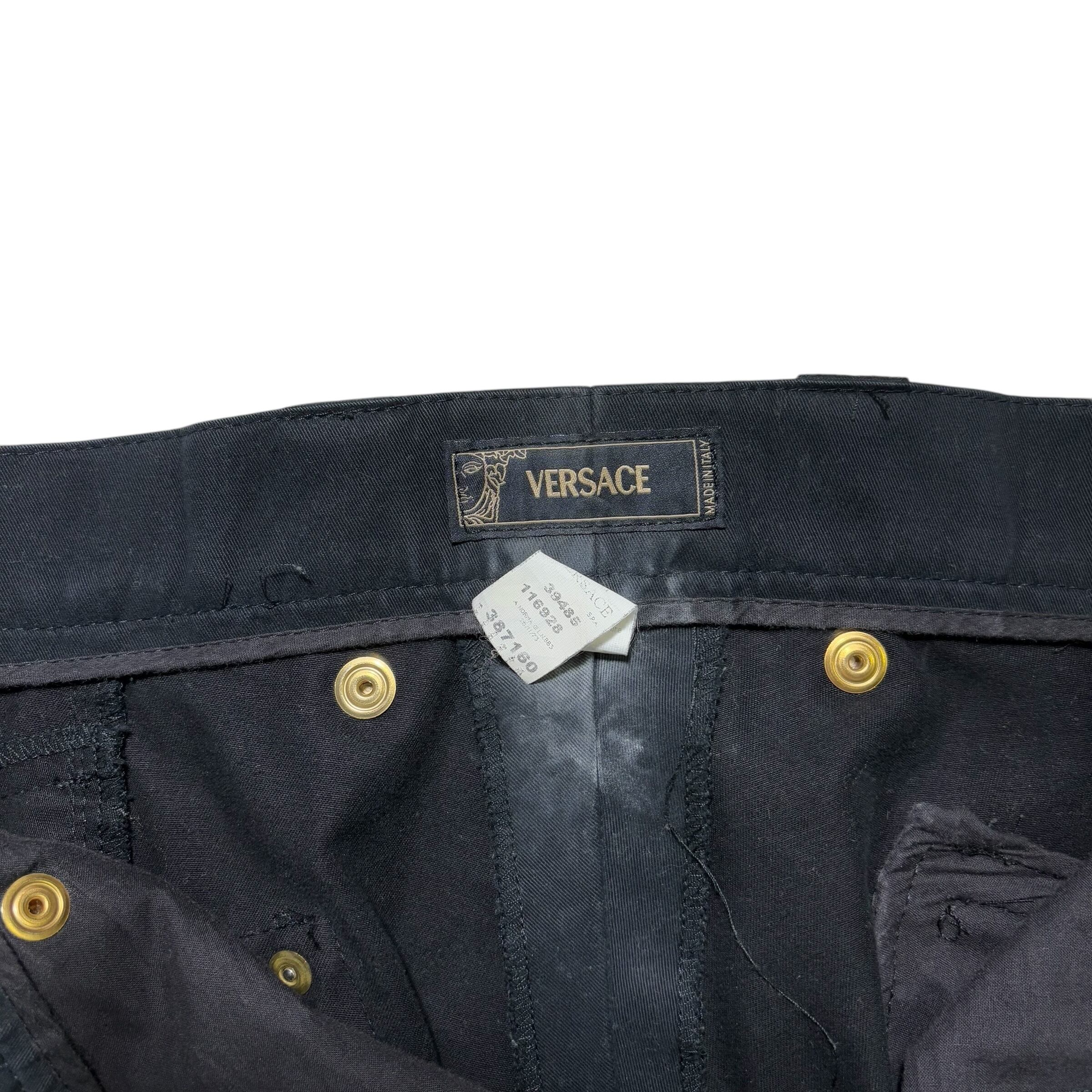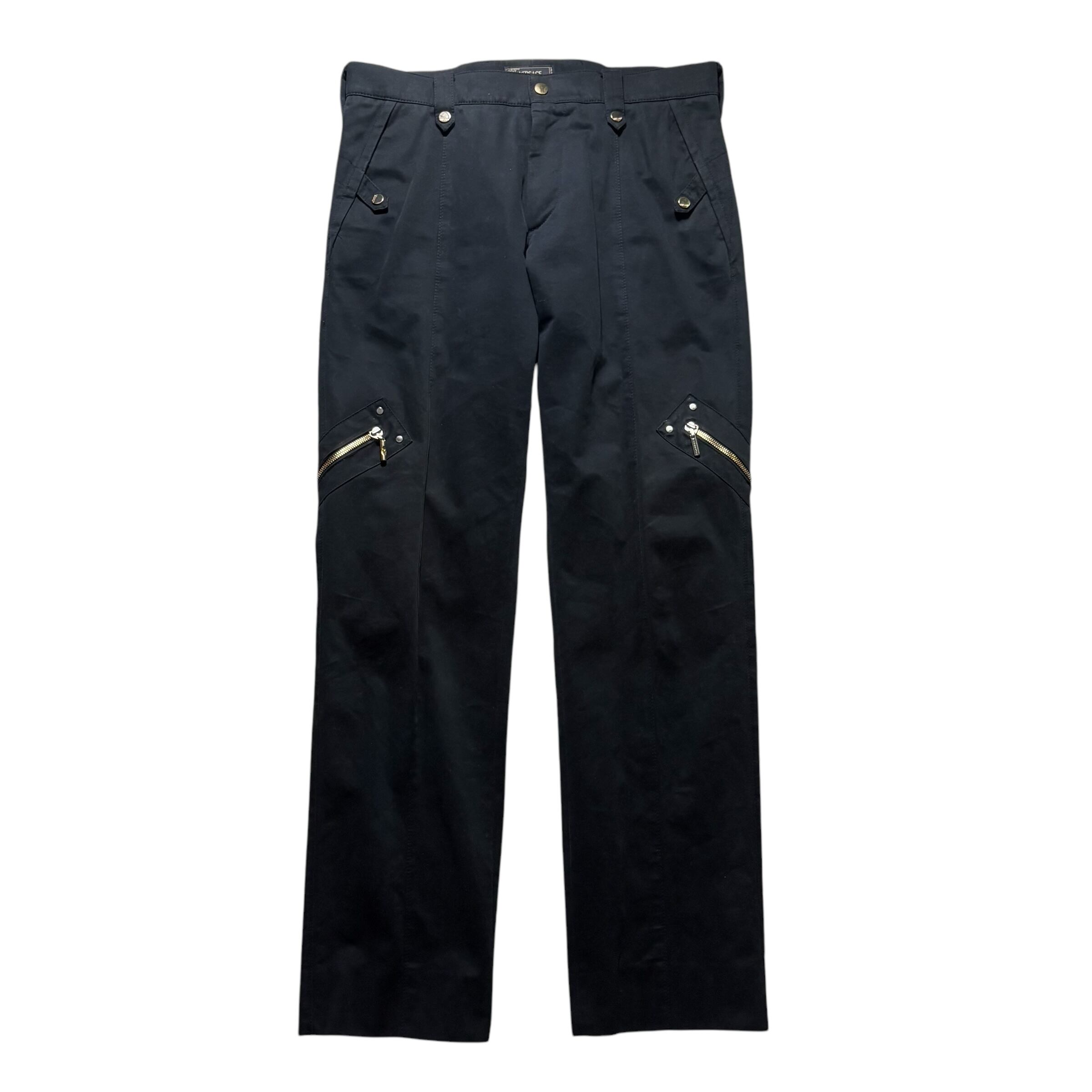 VERSACE black moleskin biker zip pants