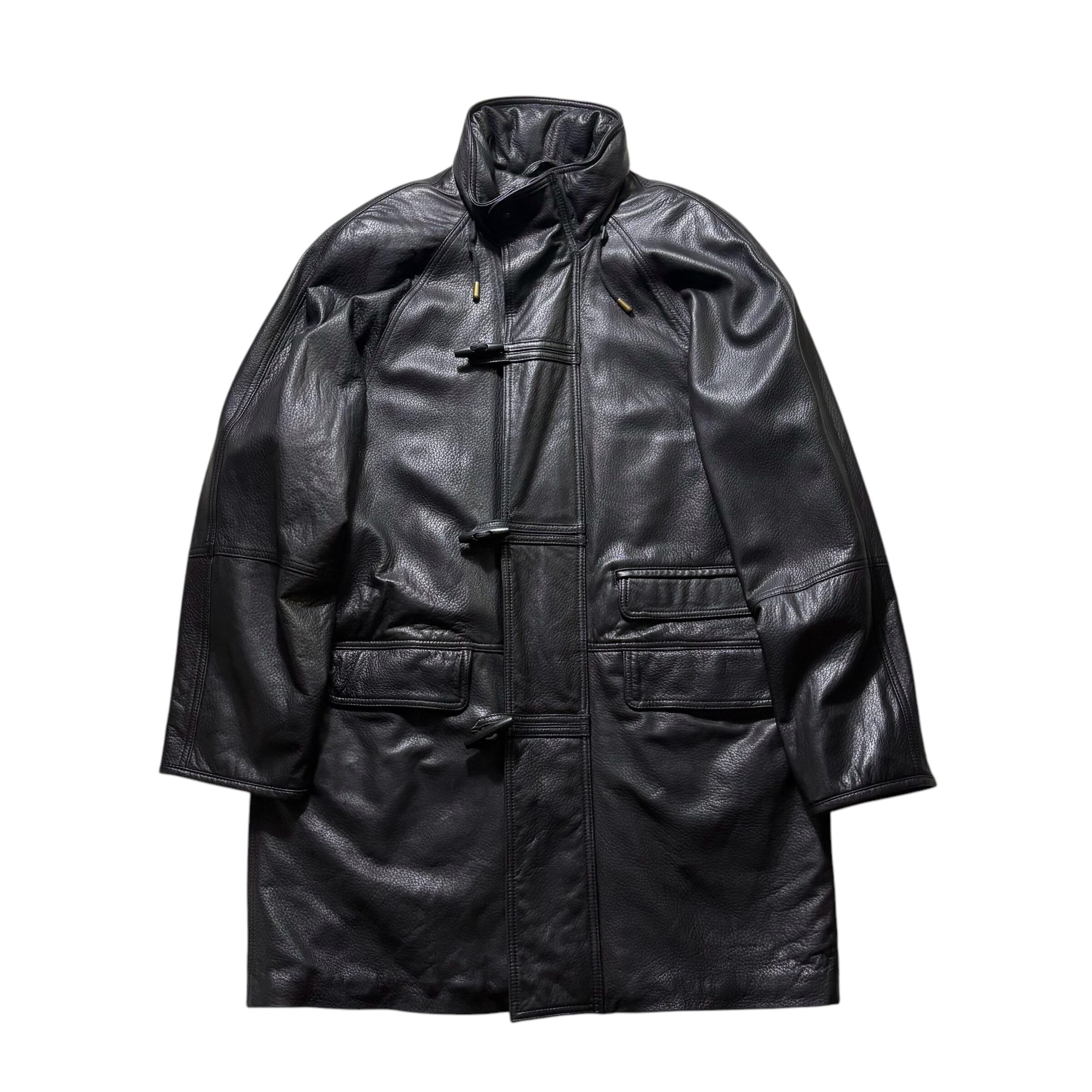 黒レザーダッフル。
